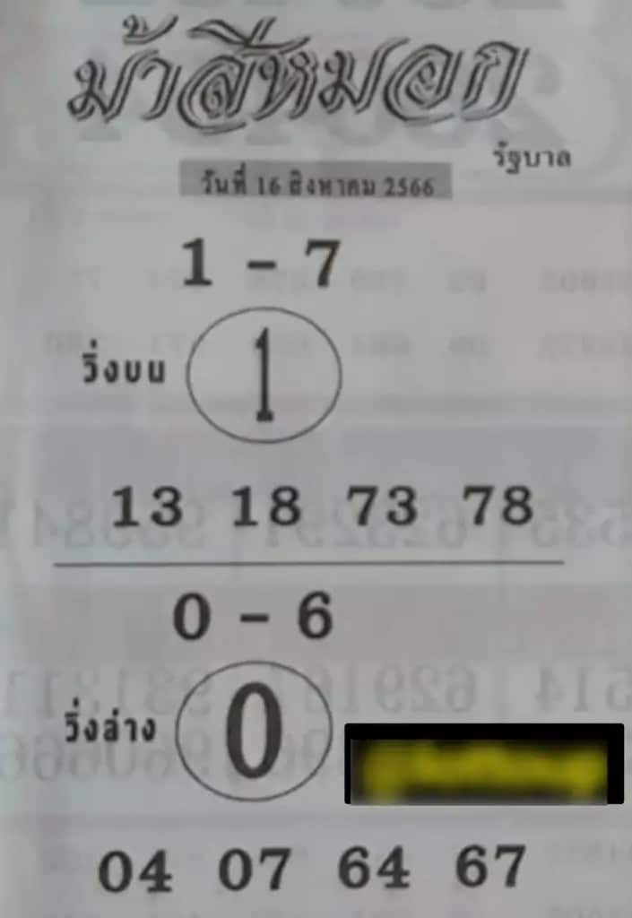 ม้าสีหมอก 16-8-66 หวยม้าสีหมอก แบ่งปันทีเด็ด หวยคัดพิเศษ เลขเด็ดงวดนี้ แจกฟรี เว็บไซต์หวยเข้าชมได้ตลอด 24 ชั่วโมง เราไม่พลาด ทุกเลขดังในวงการหวย กดติดตามเอาไว้เลย