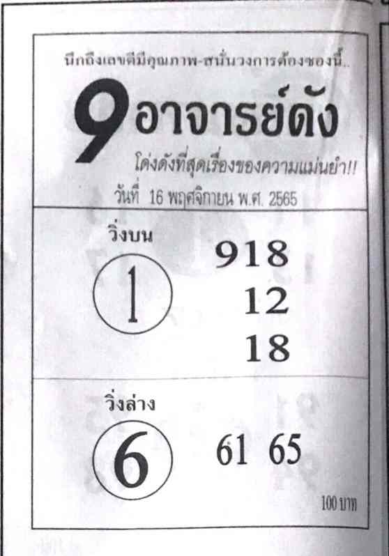 ส่วน หวย9อาจารย์ดัง16-11-65 ที่เรา สรุป วิเคราะห์เลขต่างๆ ที่น่าสนใจ ได้ที่นี่