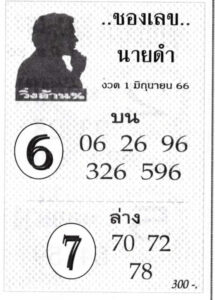 เลขนายดำ 1-6-66 คัดสรรมาให้เน้นๆ เลขซองดัง เลขเด็ด มาแรง กับ สูตรลับแม่นๆ เข้าทุกงวด รับทรัพย์กันทั่วหน้า รวยทุกงวด แน่นอน !!