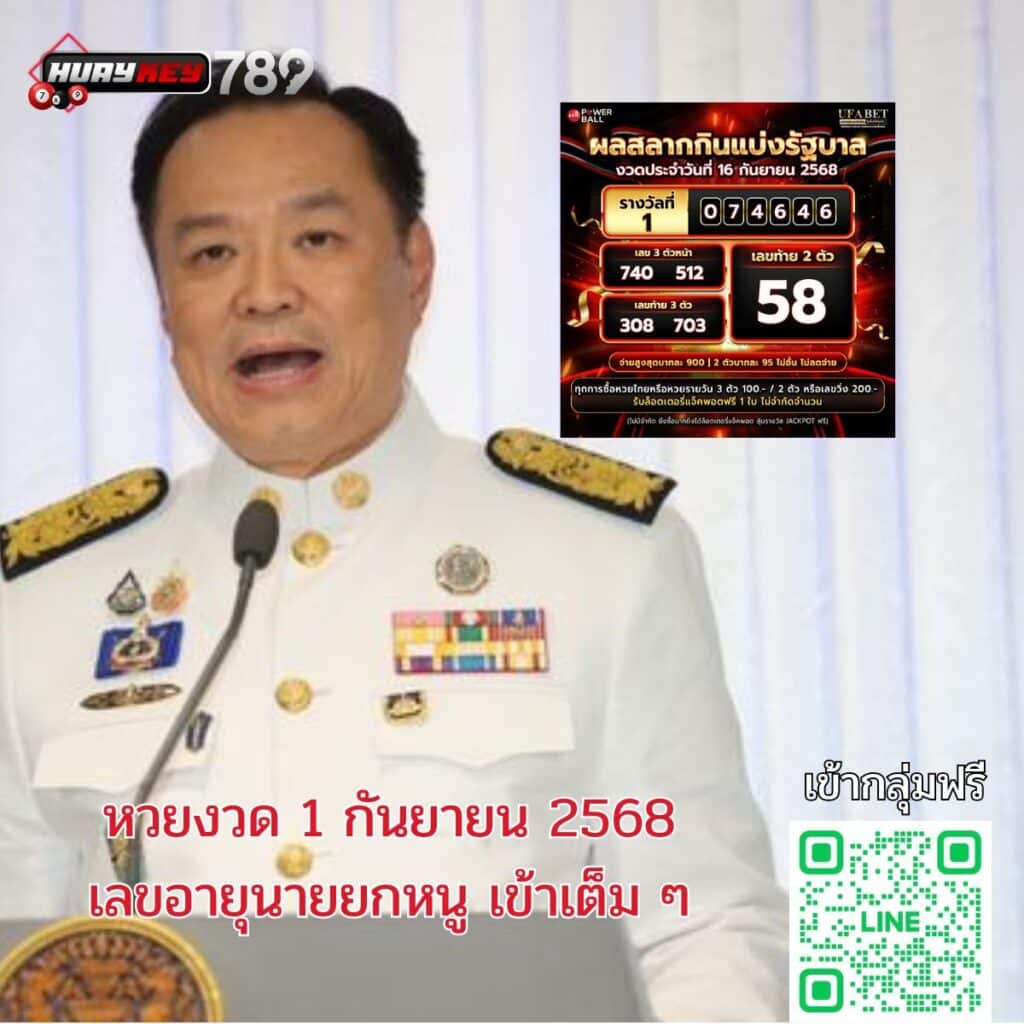 เลขอายุ นายยก เข้าเต็ม ๆ หวยงวด 16 กันยายน 2568