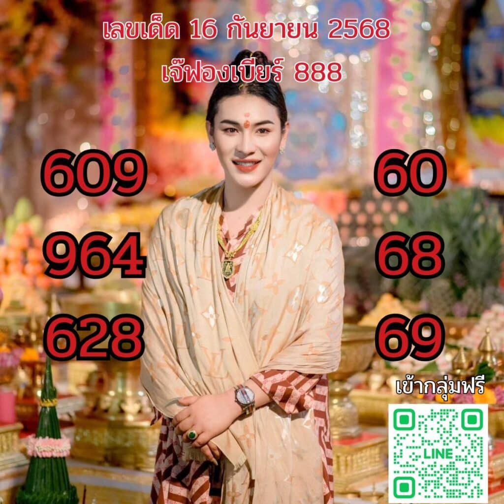 เลขเด็ด 16กันยา68 เจ๊ฟองเบียร์ 888 ฟันเลขเด่น 2 ตัว 3 ตัวตรง คอหวยแห่ตาม